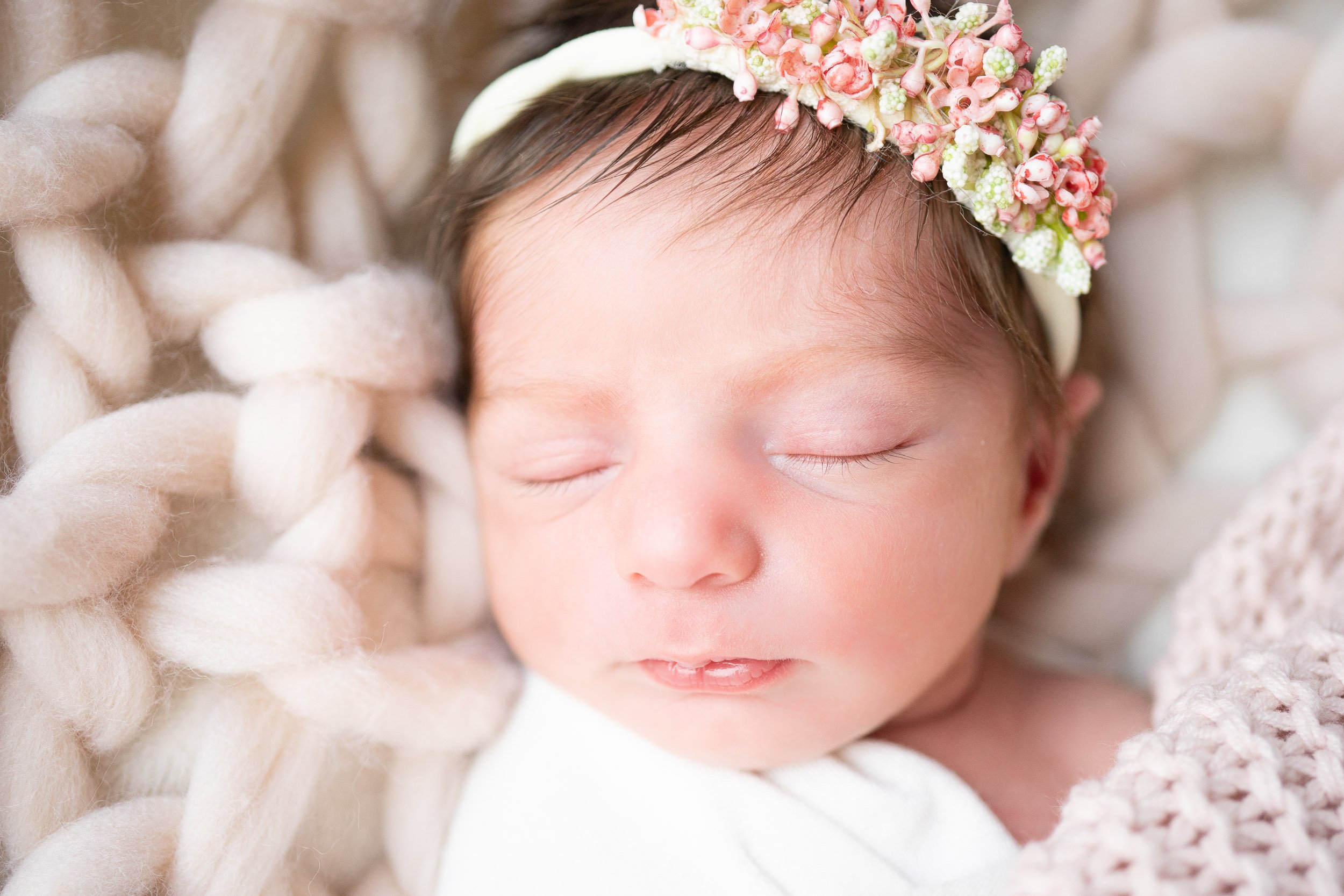 Neugeborenenfoto Baby auf rosa Decke